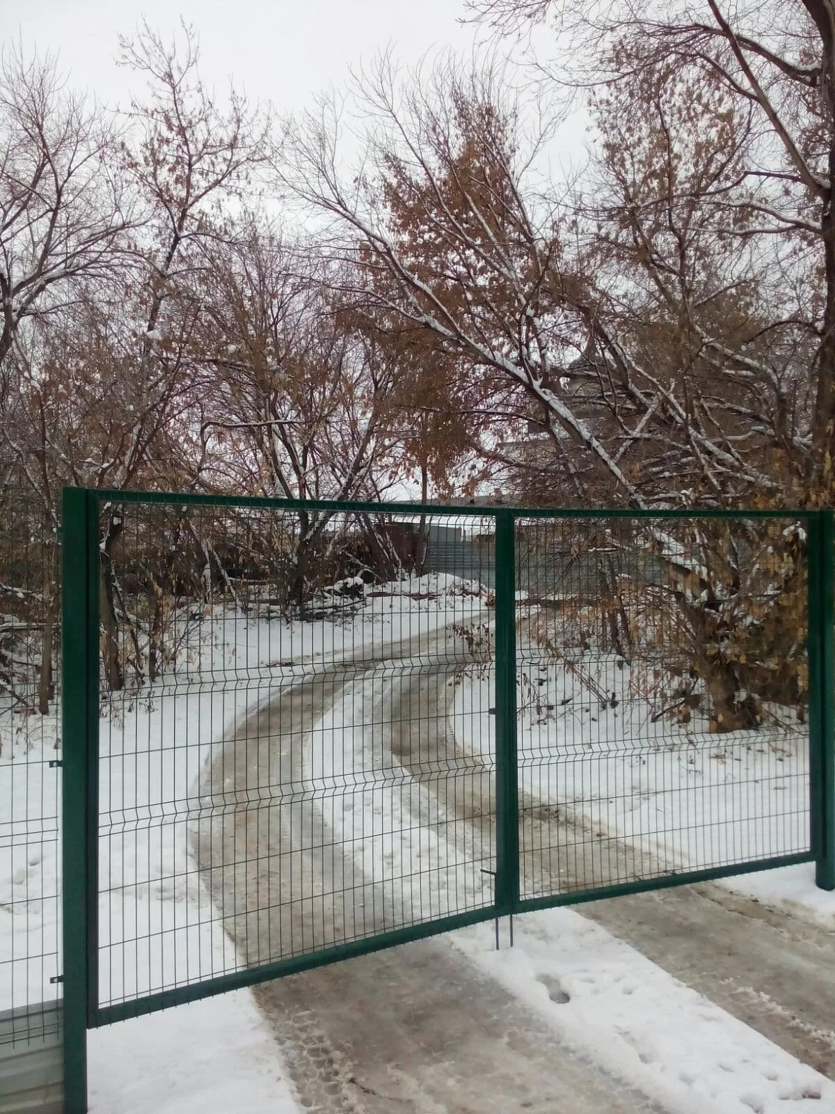 Комплектация: 3D панель 2030×2500, столбы 60×40×1,4 высота 2600, ворота 2000×4000 распашные со встроенным замком